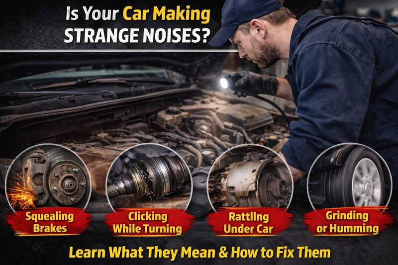 Strange car noises are never random. Whether it’s a squealing brake, clicking CV joint, grinding wheel bearing, or engine knocking sound, your vehicle is giving you an early warning. The difference between a small repair and a major breakdown often comes down to how quickly you act.